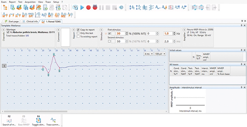 The Neurosoft Neuro-MS magnetic stimulator allows for powerful monophasic TMS pulses due to the 2800 V capacitor. The TMS device has a very low electromagnetic interference during charge and discharge, allowing clean and easy to interpret EMG, EEG, or ERP recordings. Various types of TMS coils are available such as a ring coil, a figure-of-eight coil, and a double cone coil. The diagnostic TMS unit is CE certified for clinical use in the EU.